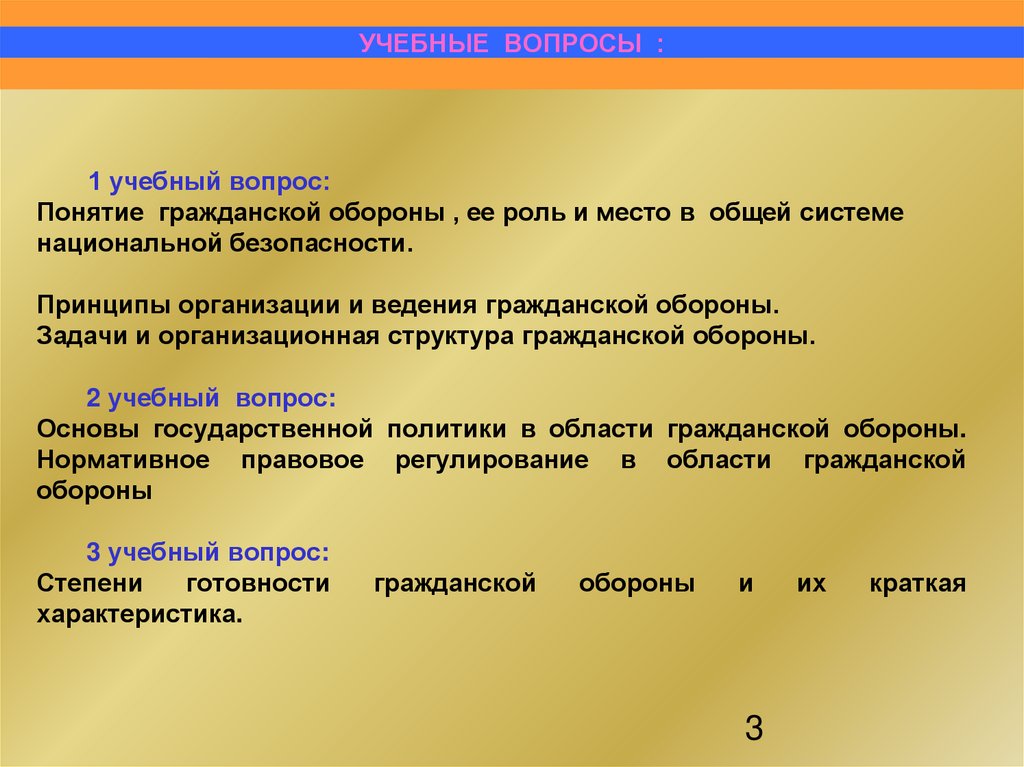 УЧЕБНЫЕ ВОПРОСЫ :1 учебный вопрос: