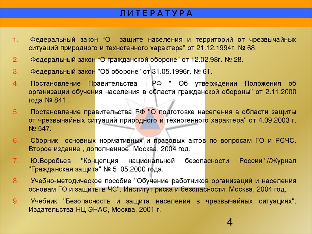 основам ГО и защиты в ЧС". Институт риска и безопасности. Москва, 2004 год.