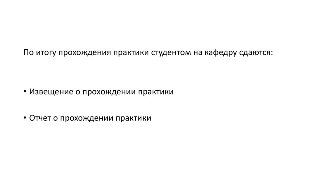 По итогу прохождения практики студентом на кафедру сдаются:• Извещение о прохождении практики