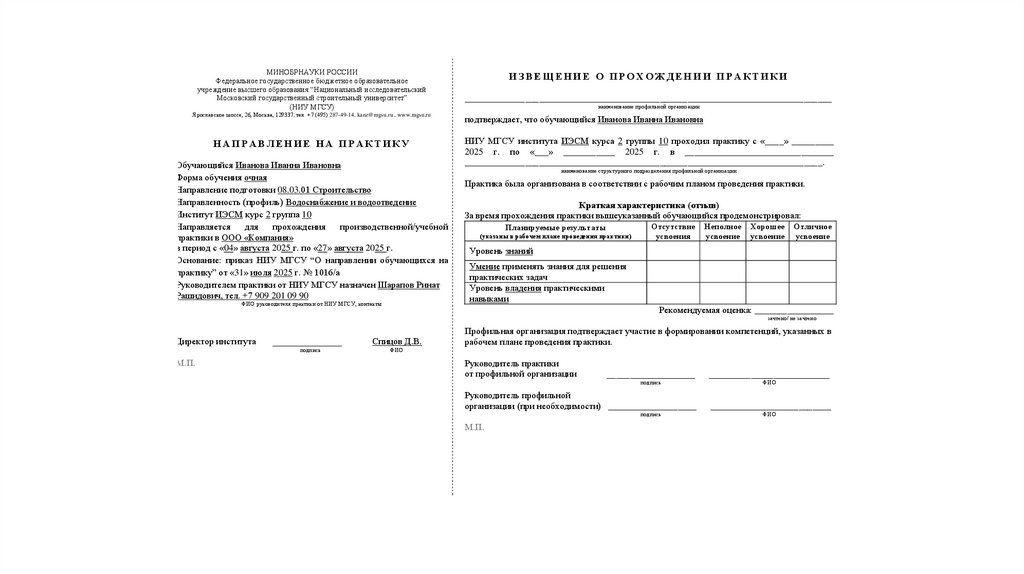 Основание: приказ НИУ МГСУ “О направлении обучающихся на