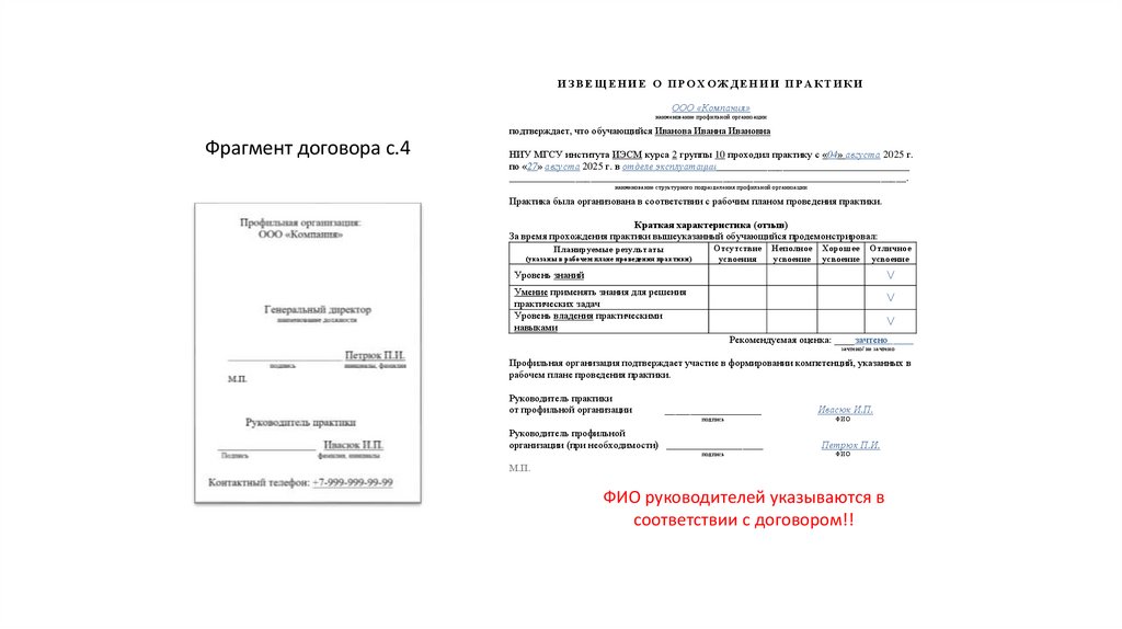 ИЗВЕЩЕНИЕ О ПРОХОЖДЕНИИ ПРАКТИКИ