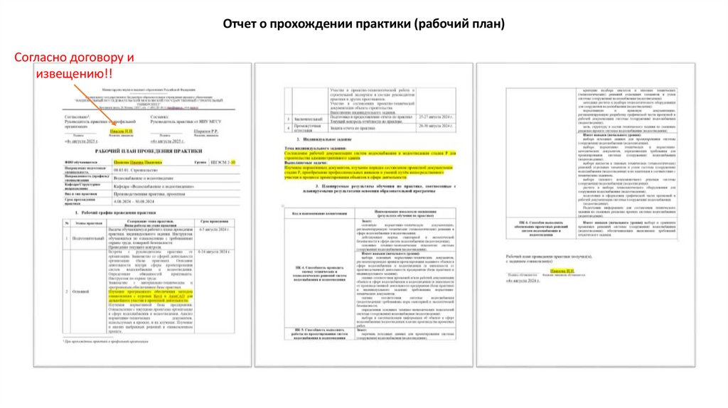 Отчет о прохождении практики (рабочий план)Согласно договору и