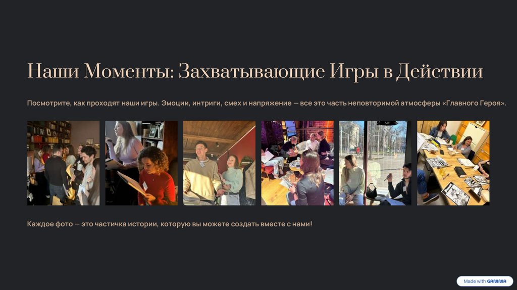 Наши Моменты: Захватывающие Игры в ДействииПосмотрите, как проходят наши игры. Эмоции, интриги, смех и напряжение — все это часть неповторимой атмосферы «Главного Героя».