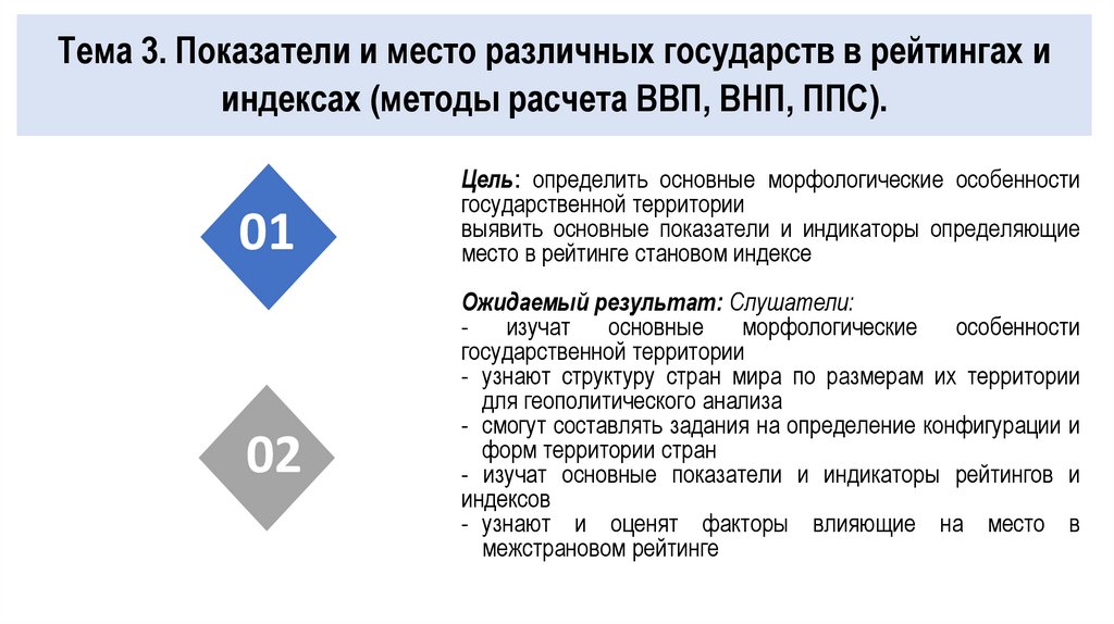 Цель: ознакомить слушателей с социальноэкономическими показателями при определении