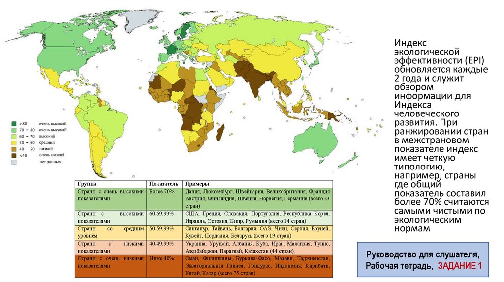середине и вконце рейтинга) в индексе экологической устойчивости.