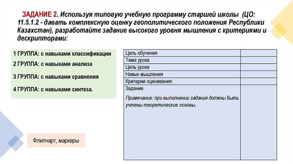 положения РеспубликиКазахстан), разработайте задание высокого уровня мышления с критериями и