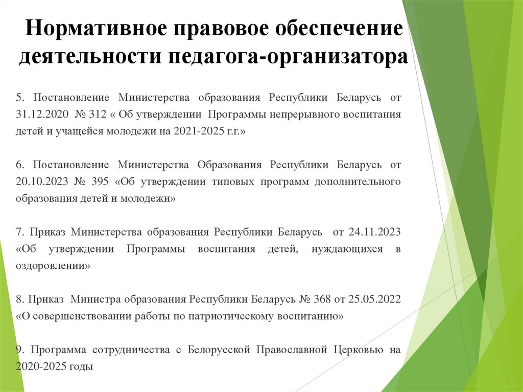 10. Нормативное правовое обеспечение деятельности педагога-организатора