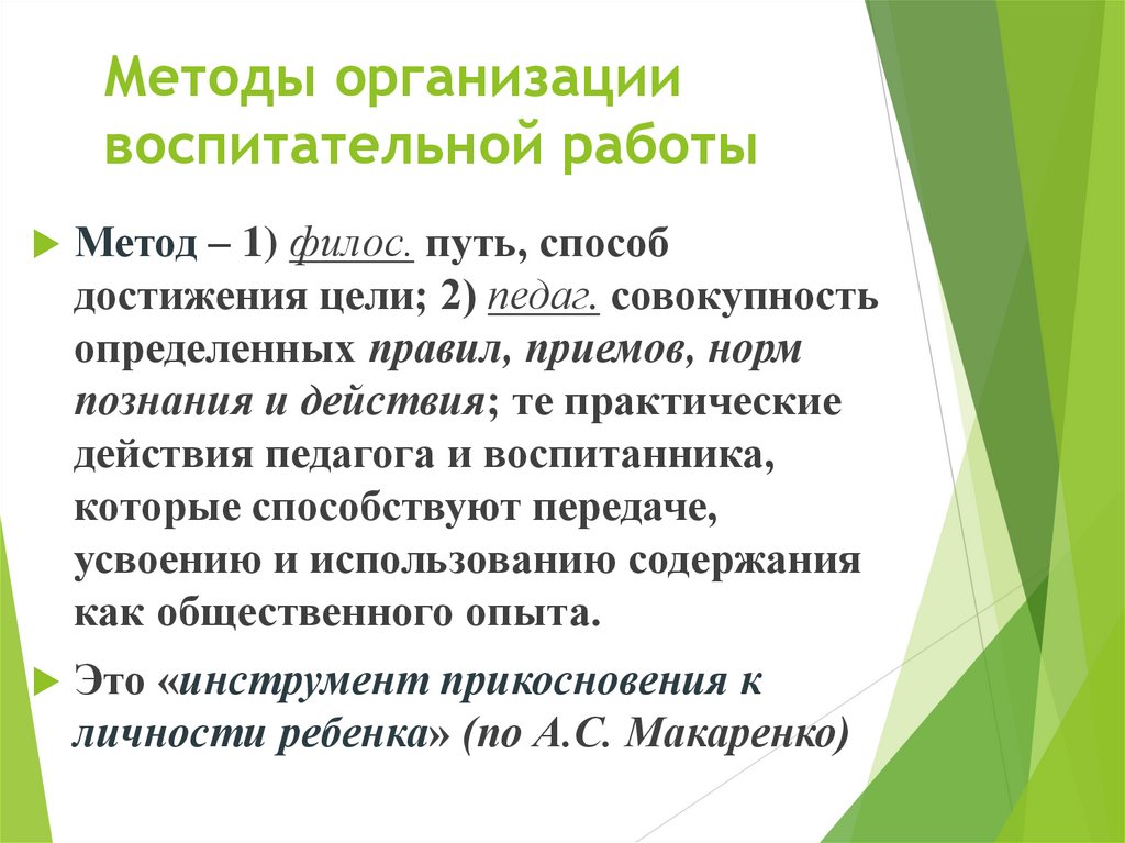 Метод – 1) филос. путь, способдостижения цели; 2) педаг. совокупность