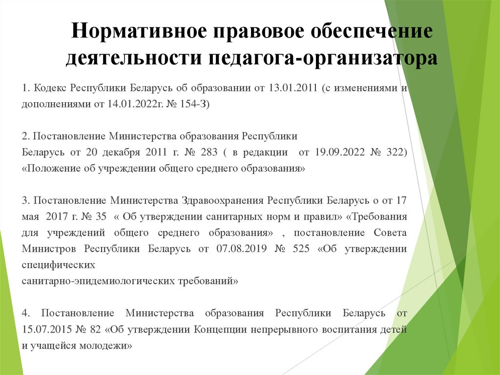1. Нормативное правовое обеспечение деятельности педагога-организатора