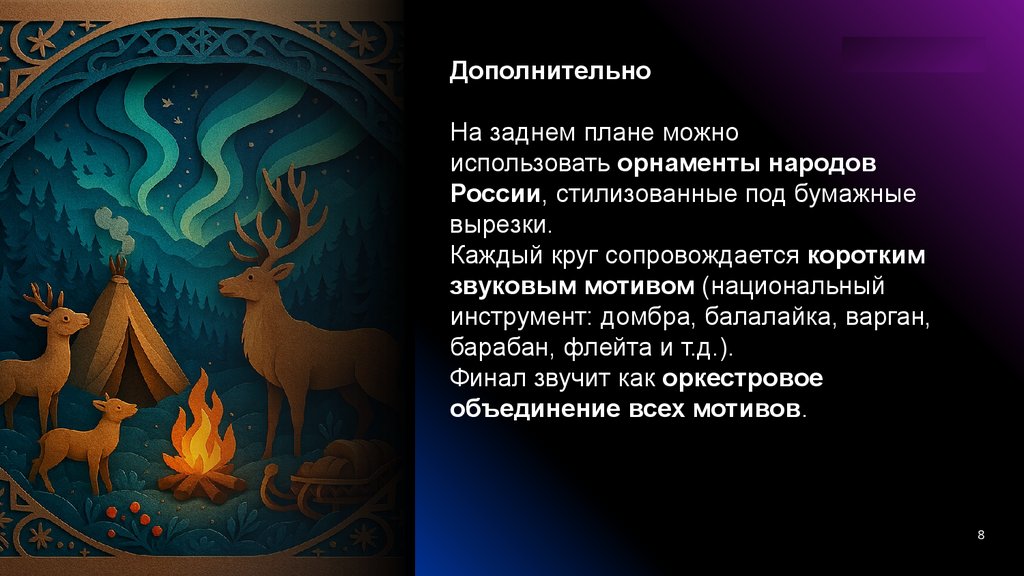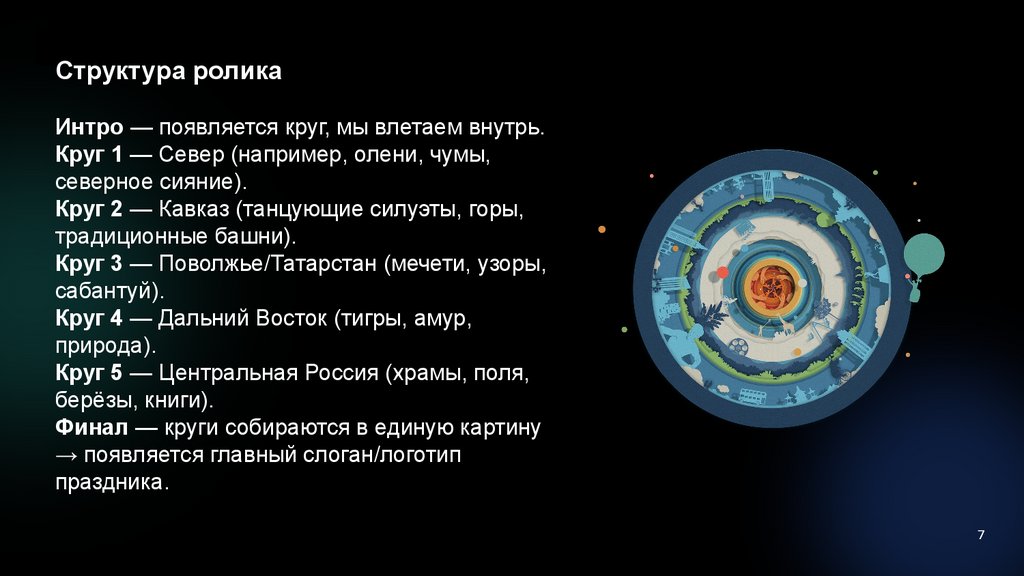 Круг 2 — Кавказ (танцующие силуэты, горы,