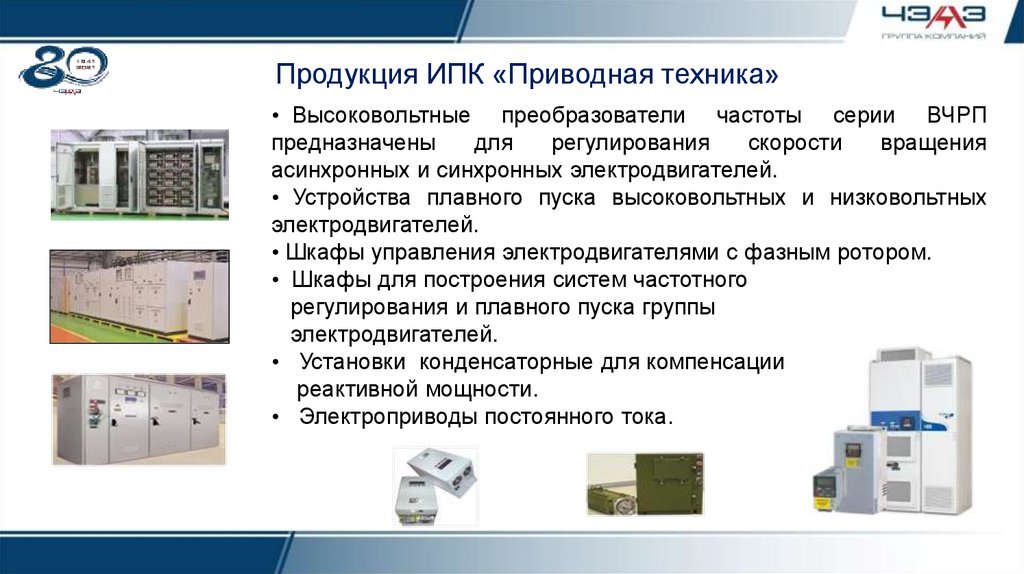 Продукция ИПК «Приводная техника»• Высоковольтные преобразователи частоты серии ВЧРП