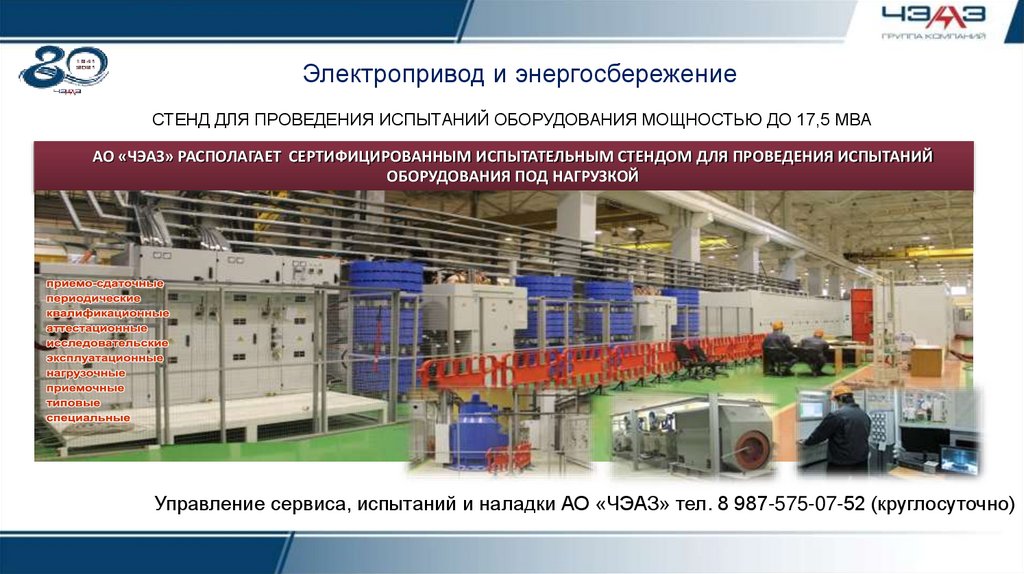 АО «ЧЭАЗ» РАСПОЛАГАЕТ СЕРТИФИЦИРОВАННЫМ ИСПЫТАТЕЛЬНЫМ СТЕНДОМ ДЛЯ ПРОВЕДЕНИЯ ИСПЫТАНИЙ
