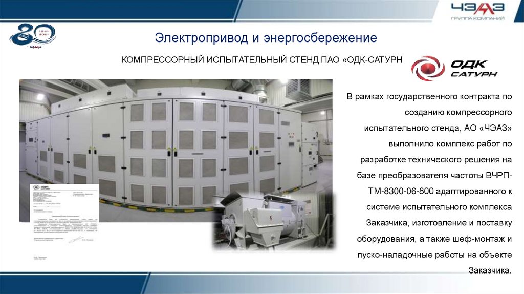 Электропривод и энергосбережениеКОМПРЕССОРНЫЙ ИСПЫТАТЕЛЬНЫЙ СТЕНД ПАО «ОДК-САТУРН