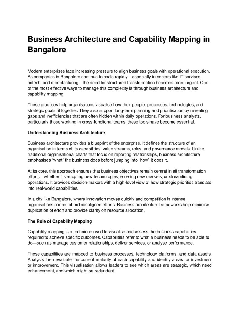 Business Architecture and Capability Mapping inBangalore