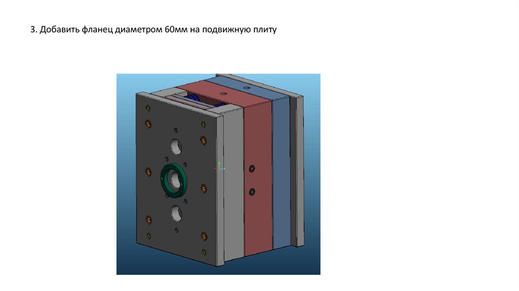 3. Добавить фланец диаметром 60мм на подвижную плиту5.