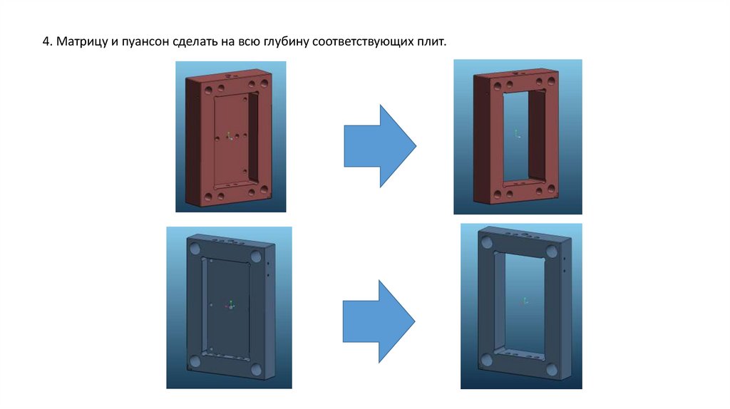 4. Матрицу и пуансон сделать на всю глубину соответствующих плит.6.