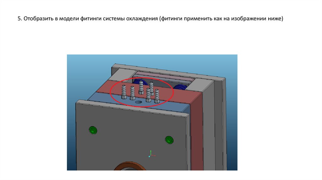 5. Отобразить в модели фитинги системы охлаждения (фитинги применить как на изображении ниже)7.
