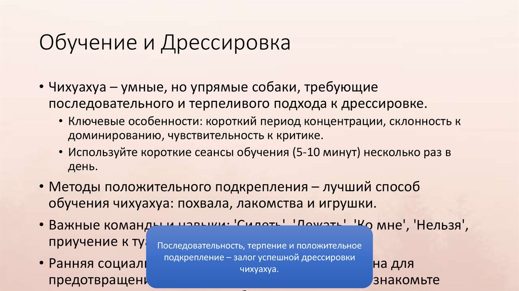 Обучение и Дрессировка• Чихуахуа – умные, но упрямые собаки, требующие