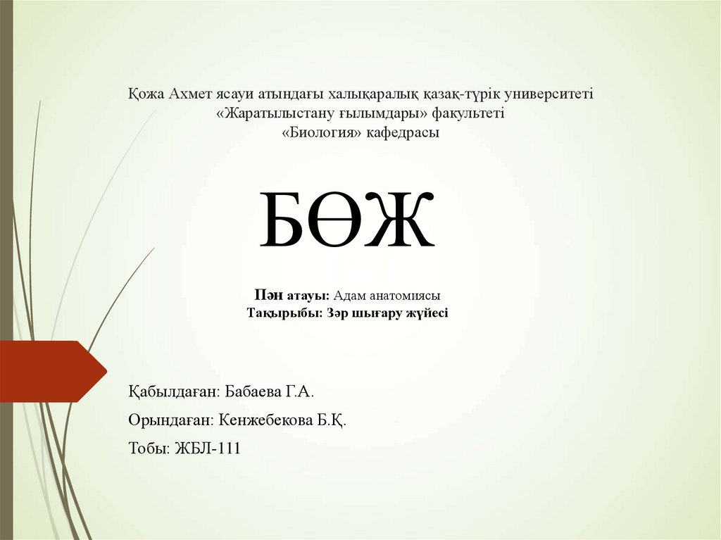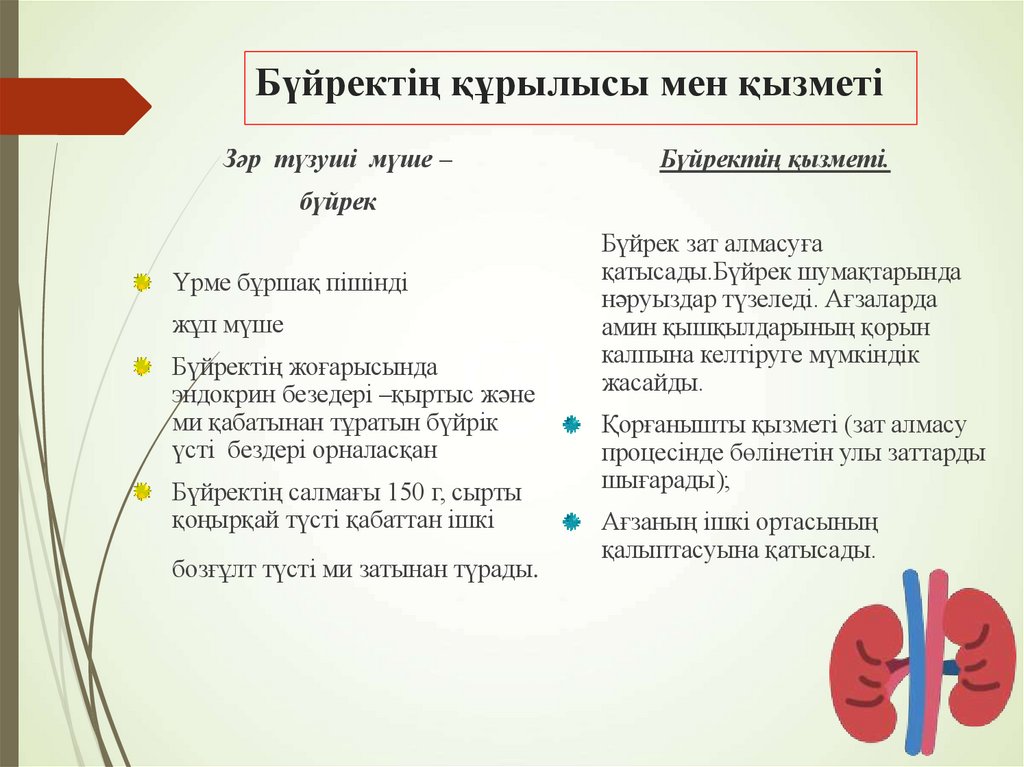 Бүйректің құрылысы мен қызметіЗәр түзуші мүше –