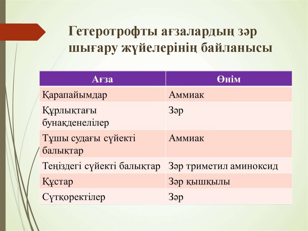 Гетеротрофты ағзалардың зәршығару жүйелерінің байланысы