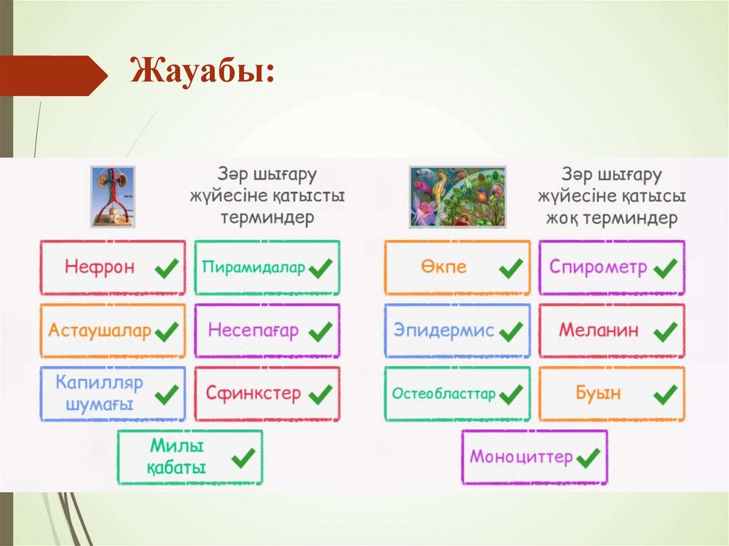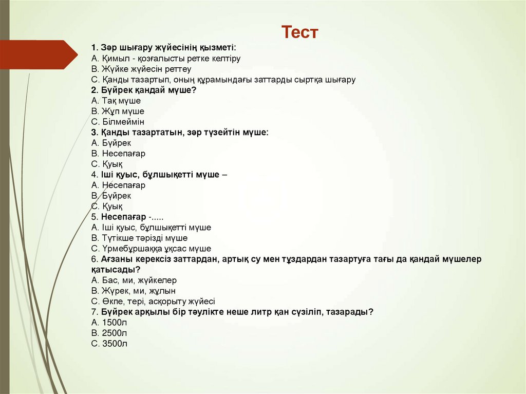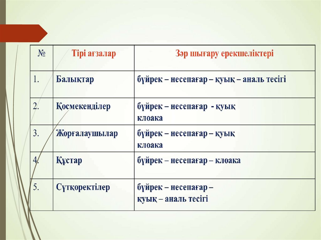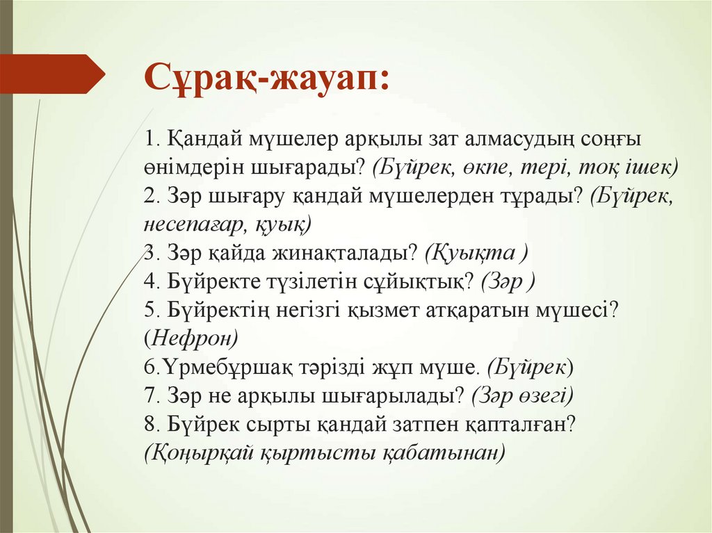 Сұрақ-жауап:1. Қандай мүшелер арқылы зат алмасудың соңғы