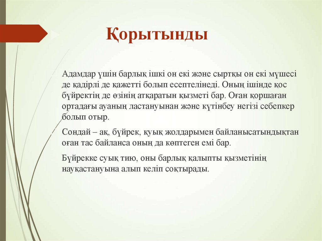 бүйректің де өзінің атқаратын қызметі бар. Оған қоршаған