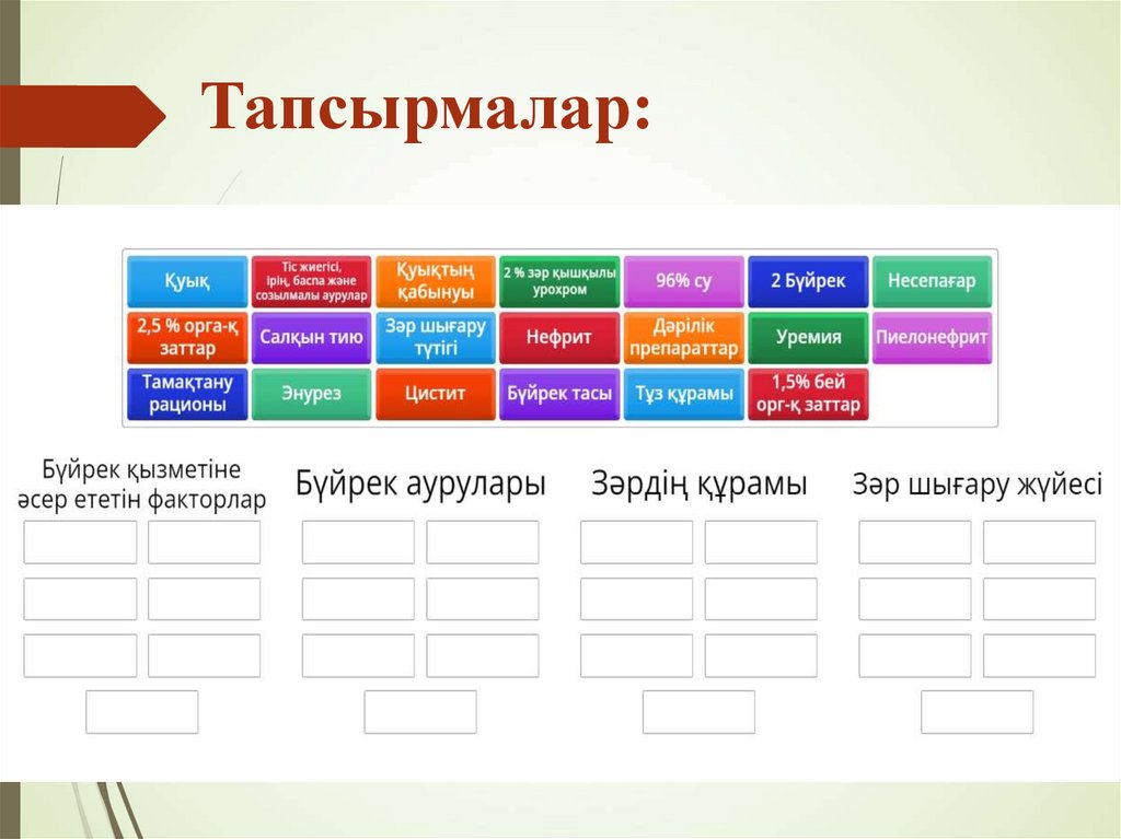 өнімдерін шығарады? (Бүйрек, өкпе, тері, тоқ ішек)