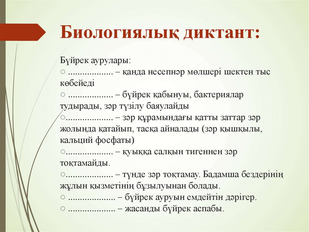 ○ .................... – бүйрек ауруын емдейтін дәрігер.