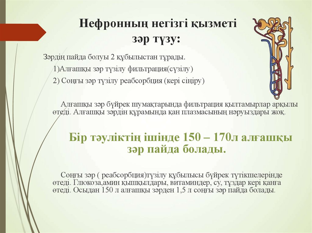 өтеді. Осыдан 150 л алғашқы зәрден 1,5 л соңғы зәр пайда болады.