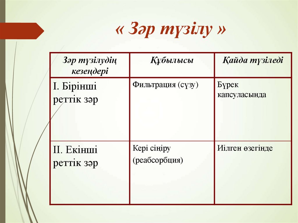 Соңғы зәр ( реабсорбция)түзілу құбылысы бүйрек түтікшелерінде