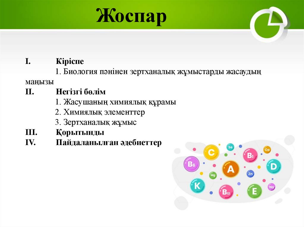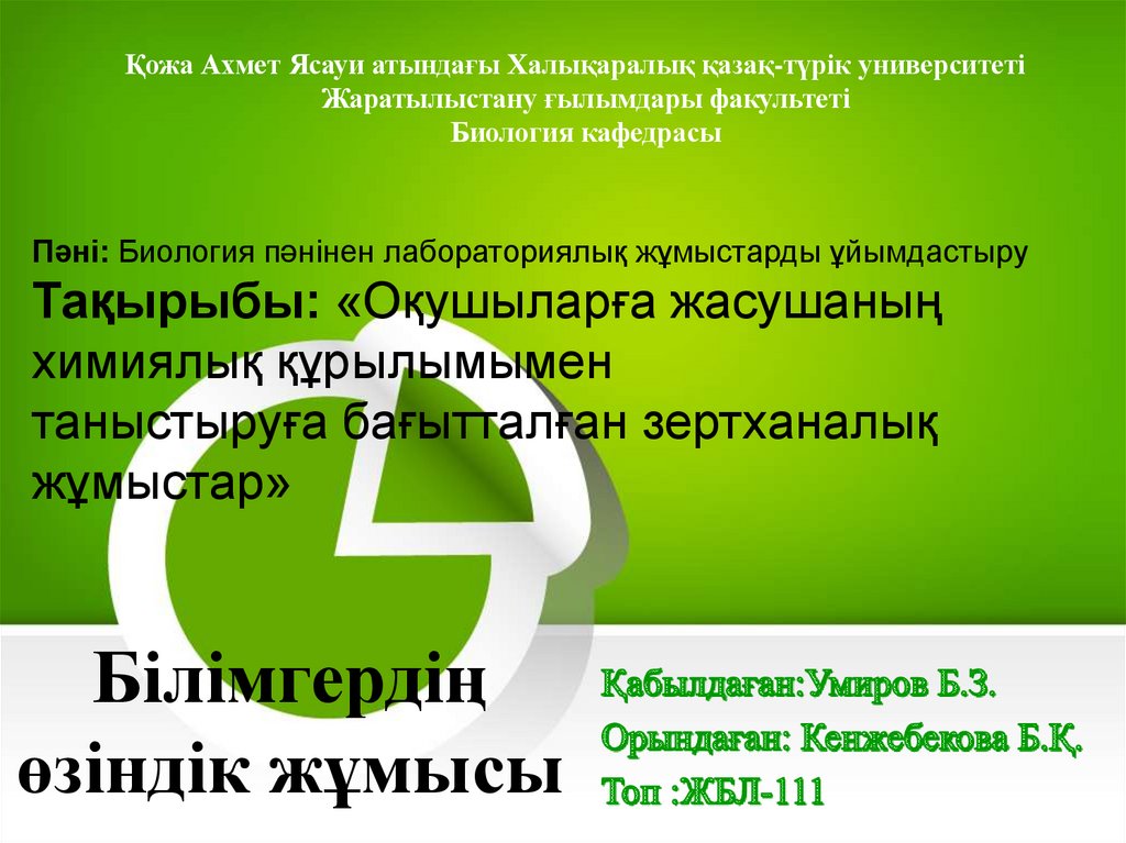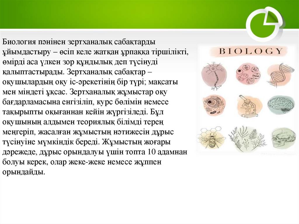 1. Биология пәнінен зертханалық жұмыстарды жасаудың