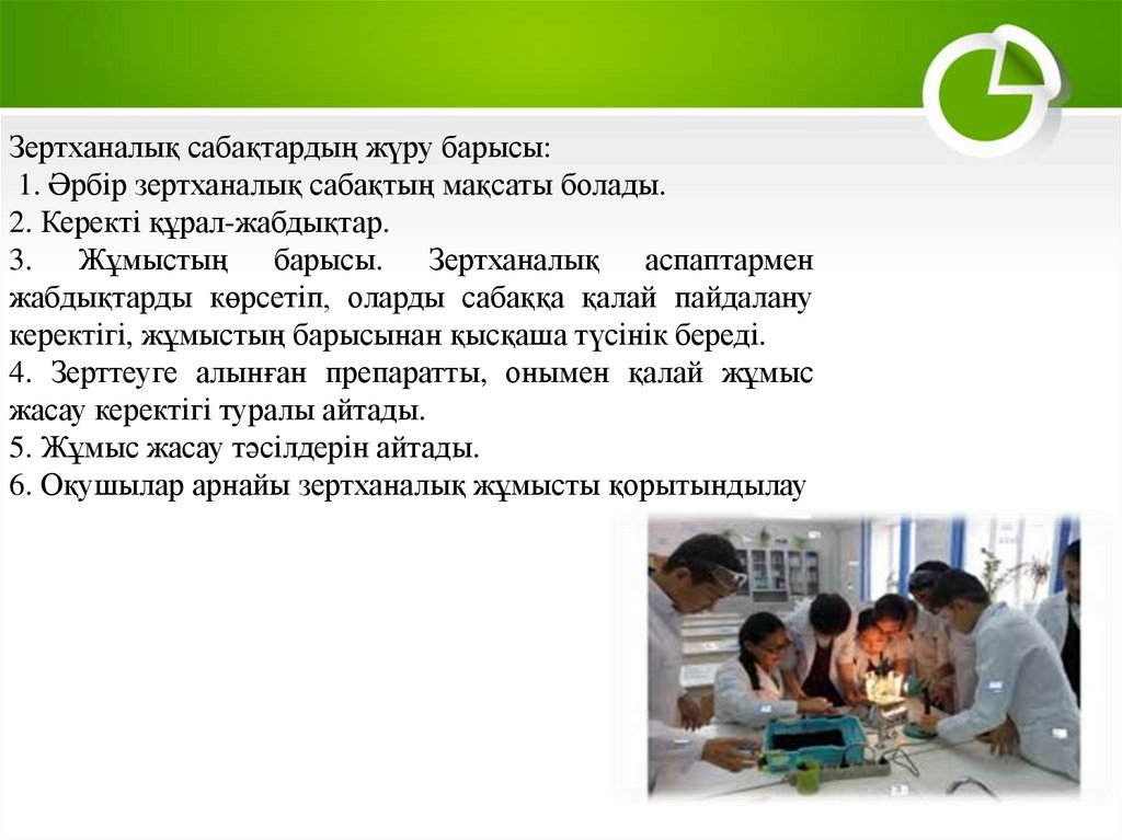 алмастыруға болады. Зертханалық сабақтар мұғалімнің жаңа тақырыпты