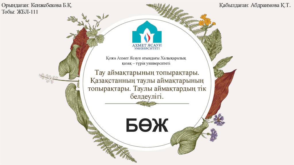 Қабылдаған: Абдраимова Қ.Т.Орындаған: Кенжебекова Б.Қ.