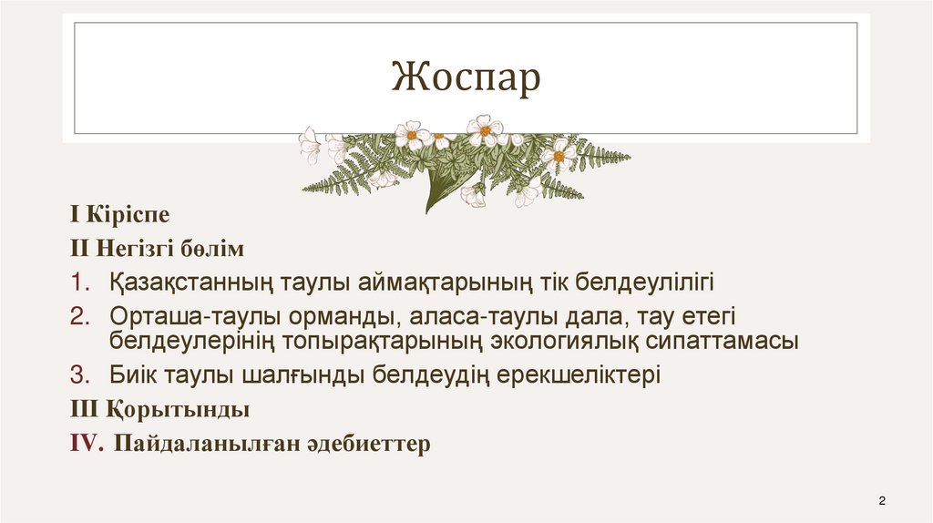 2. Орташа-таулы орманды, аласа-таулы дала, тау етегі