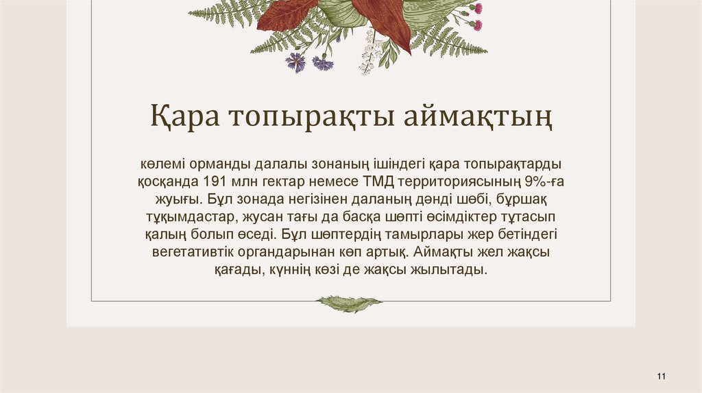 Қара топырақты аймақтыңкөлемі орманды далалы зонаның ішіндегі қара топырақтарды