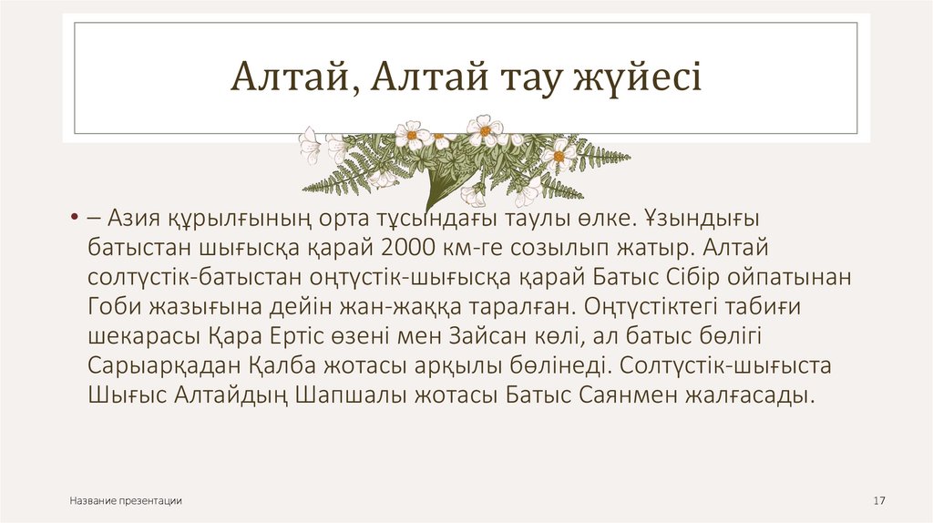 Алтай, Алтай тау жүйесі• – Азия құрылғының орта тұсындағы таулы өлке. Ұзындығы