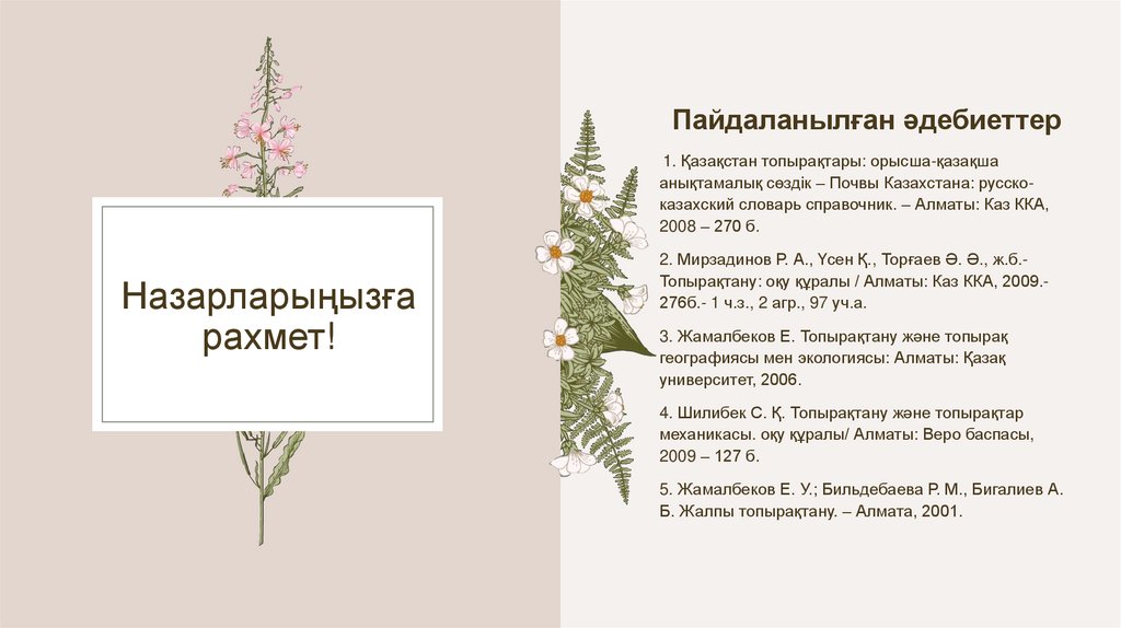 Пайдаланылған əдебиеттер1. Қазақстан топырақтары: орысша-қазақша