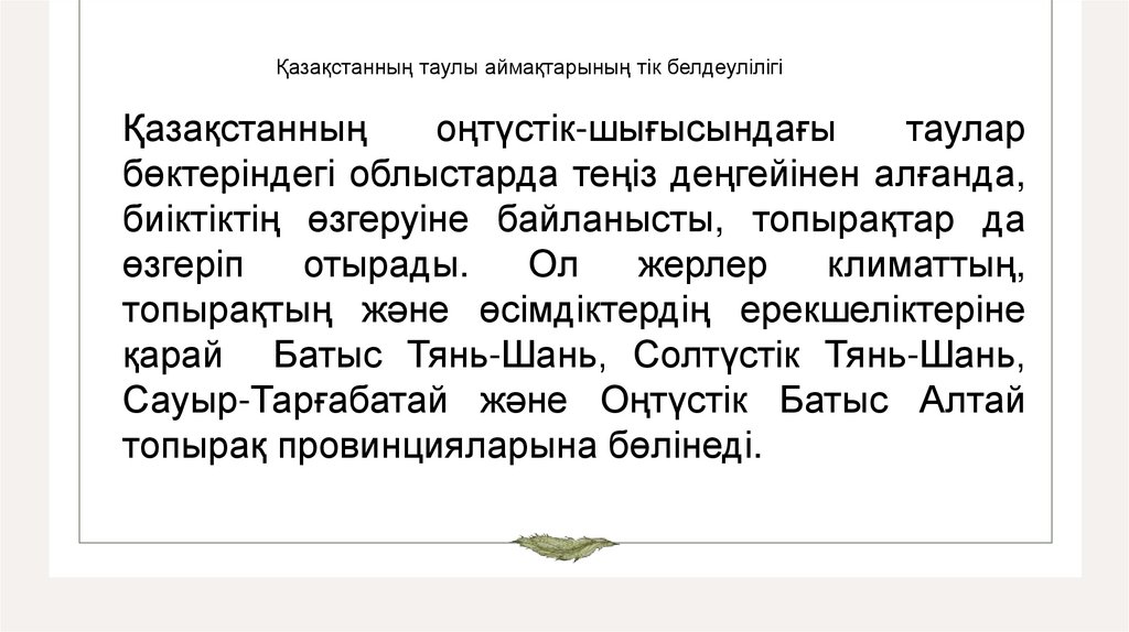 Қазақстанның таулы аймақтарының тік белдеулілігі4.