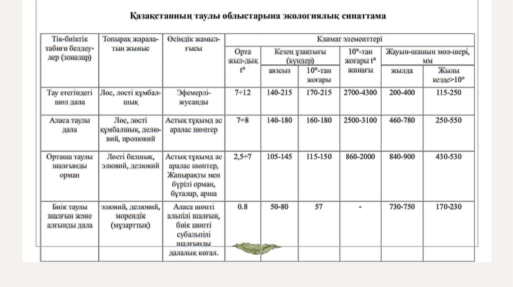 1. Қазақстанның таулы аймақтарының тік белдеулілігі