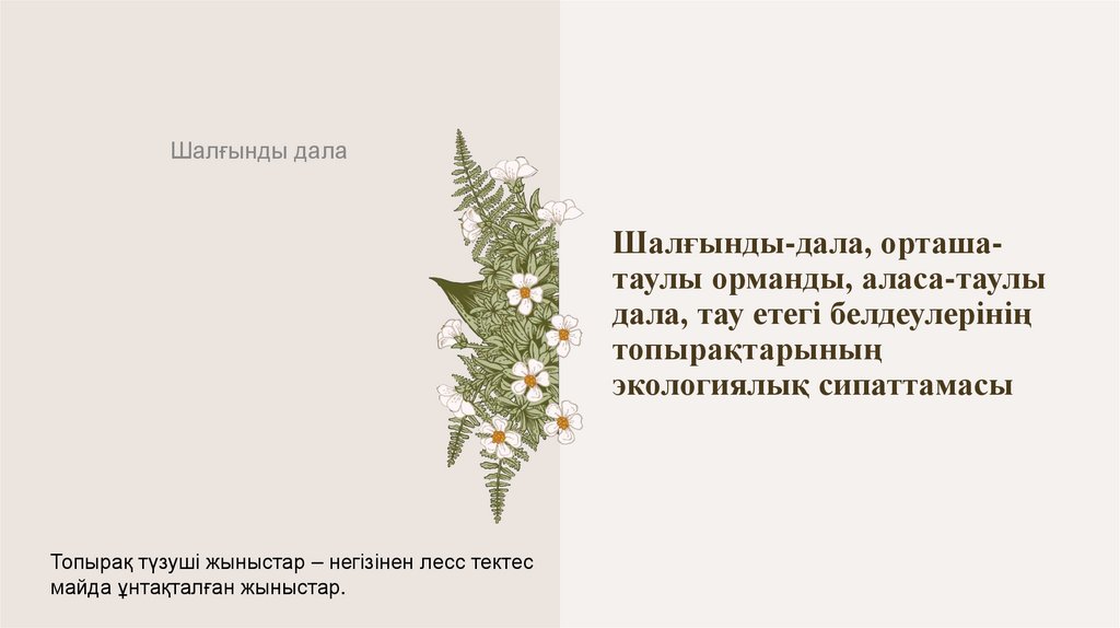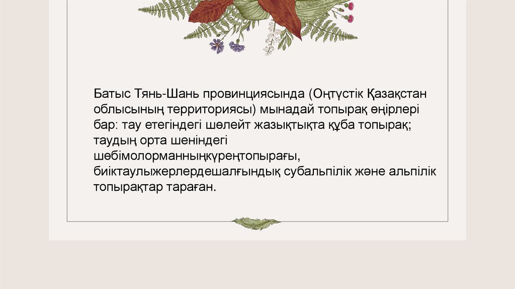 топырақтың жəне өсімдіктердің ерекшеліктеріне