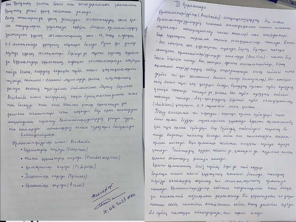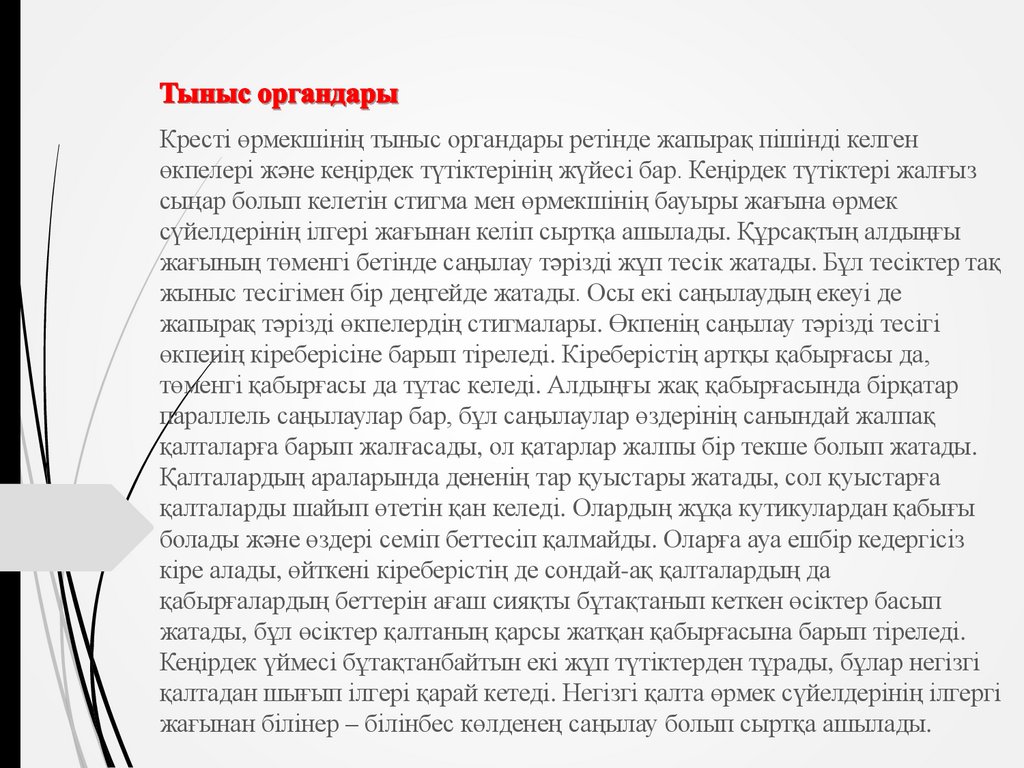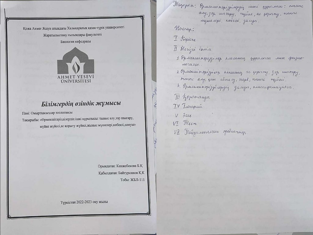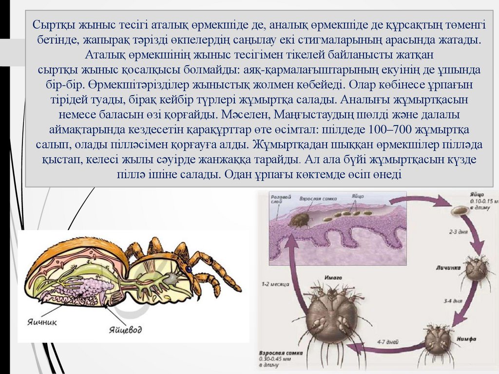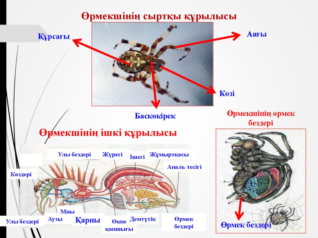 Өрмекшітәрізділердің ішкі құрылысы: тыныс алу, зәр шығару, жүйке жүйесі,ас қорыту жүйесі, жыныс мүшелері, көбеюі,дамуы