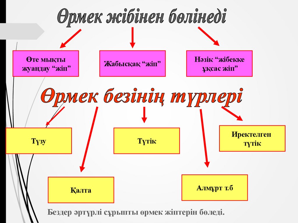 Бездер әртүрлі сұрыпты өрмек жіптерін бөледі.