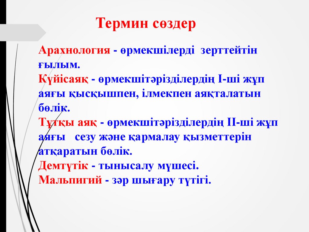 Термин сөздерАрахнология - өрмекшілерді зерттейтін