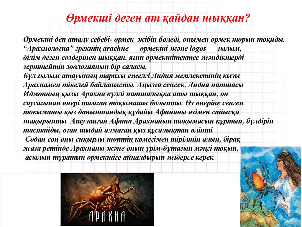 “Арахнология” гректің arасhne — өрмекші және lоgos — ғылым,