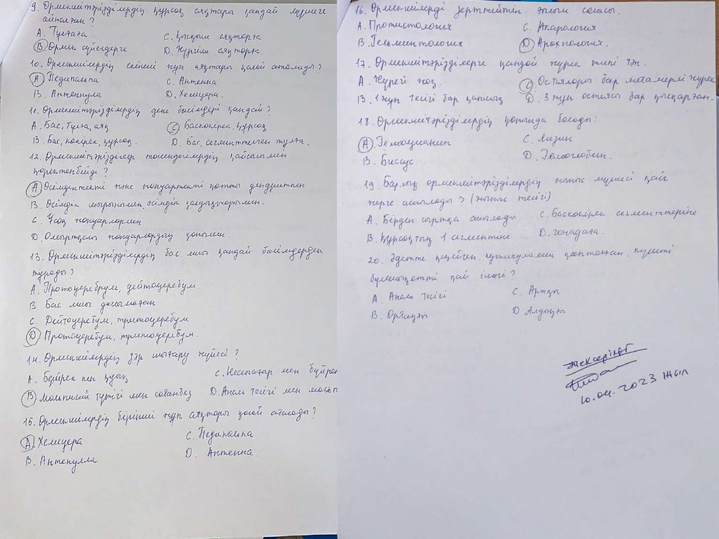 Пән:«Омыртқасыздарзоологиясы» пәні бойынша