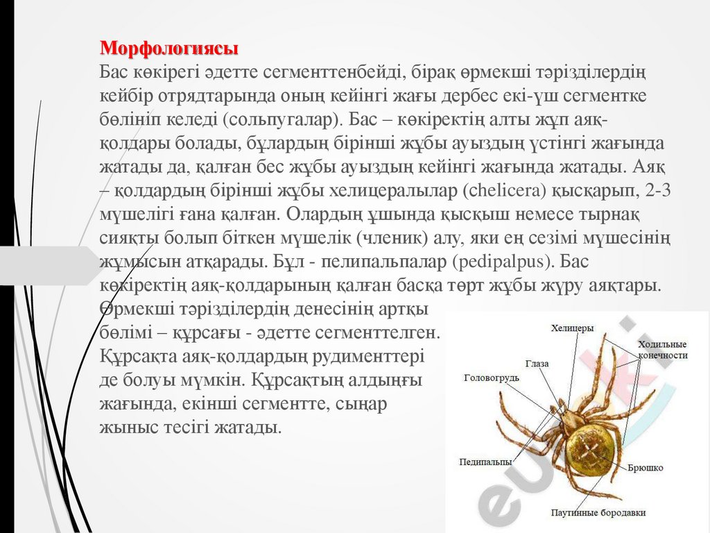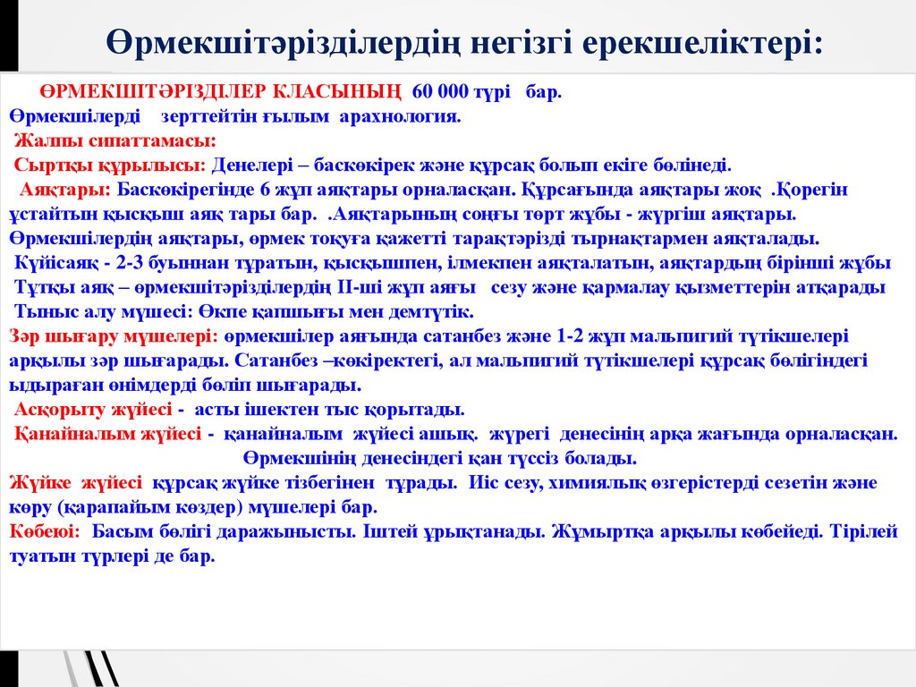 Өрмекшітәрізділердің негізгі ерекшеліктері, көп
