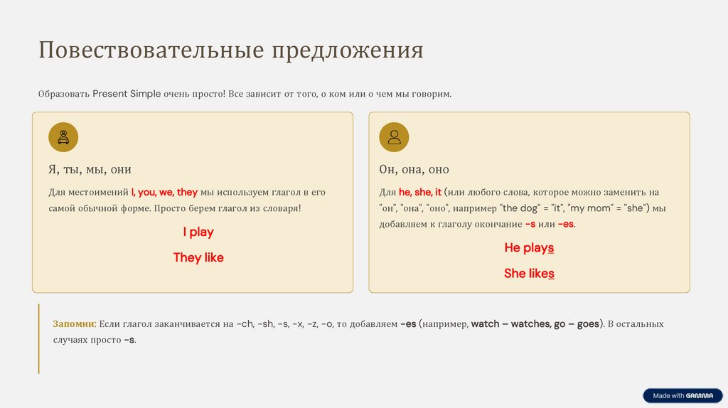Повествовательные предложенияОбразовать Present Simple очень просто! Все зависит от того, о ком или о чем мы говорим.