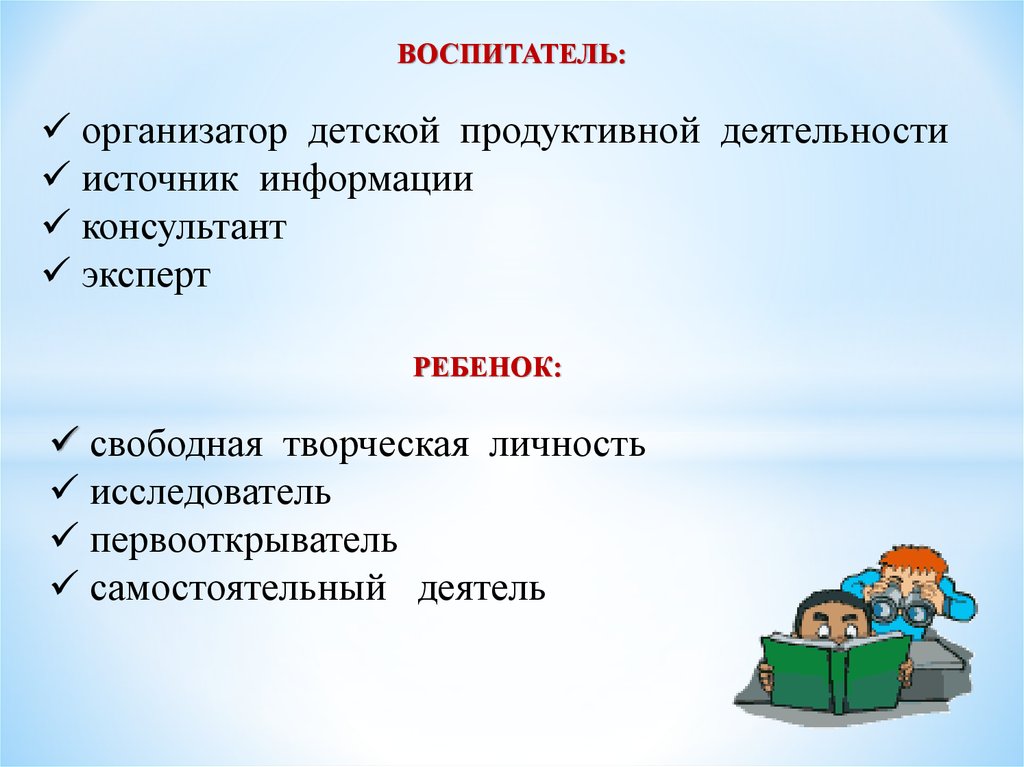 ВОСПИТАТЕЛЬ:организатор детской продуктивной деятельности