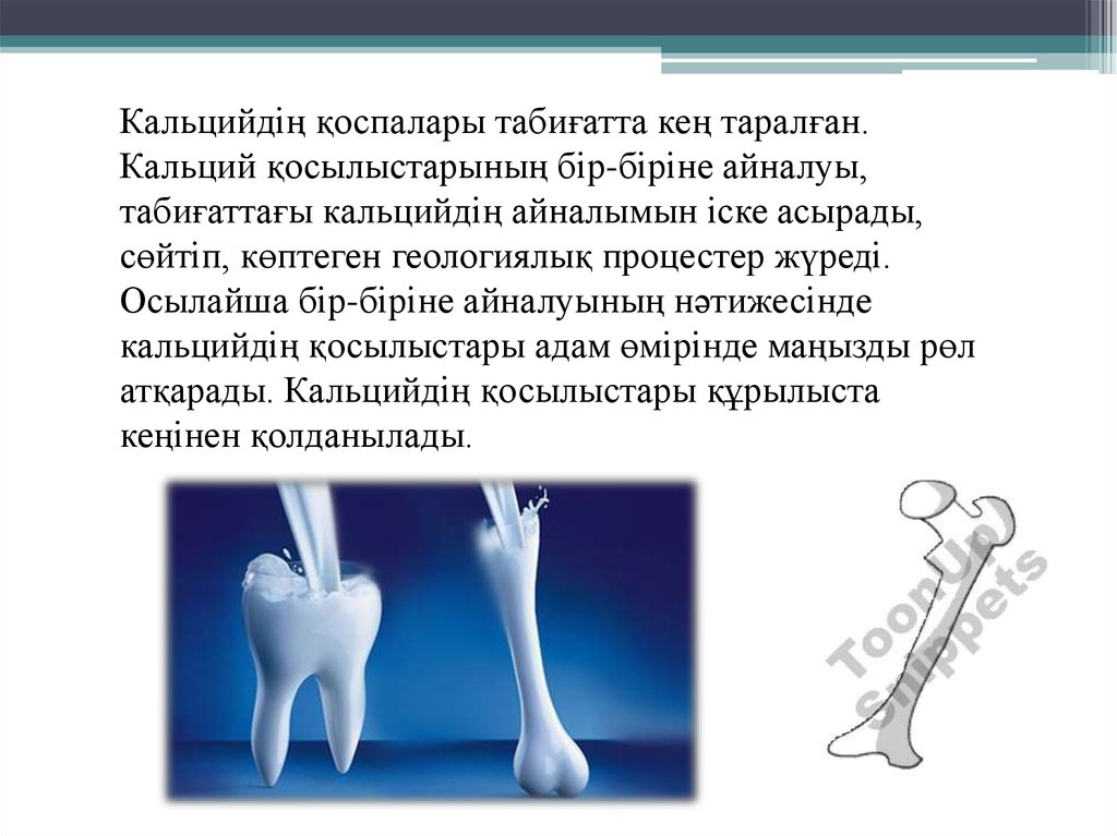 кальцийдің қосылыстары адам өмірінде маңызды рөл