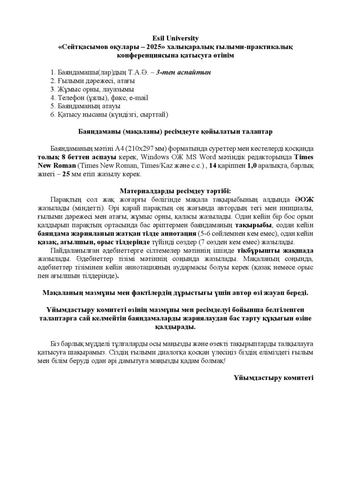 2025 жылдың 12 қыркүйегіне дейін ұйымдастыру комитетіне материалды